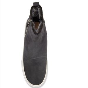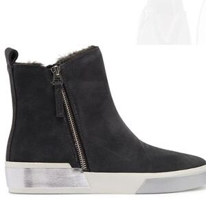 DOLCE VITA Faux Shearling Sneaker Wedge Bootie, Black Leather, Size 8 1/2, NWT