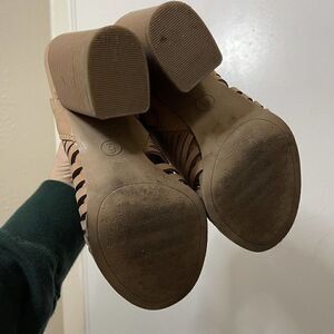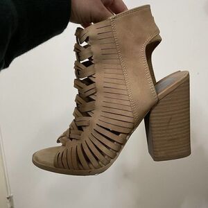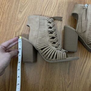 DOLCE VITA tan brown boho peep toe chunk heel size US 6