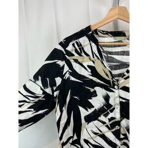 DOLCEZZA Printed Button Front Shirt 3/4 Sleeve Black White Tan Estimated L XL