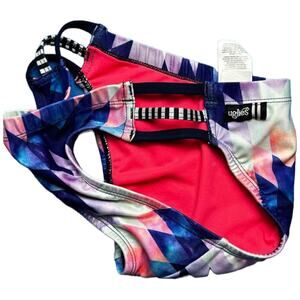 DOLFIN XS Geometric Print Bikini Bottom Pink Navy Blue Striped Swimwear Athletic