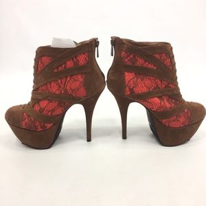 DOLLHOUSE Brown Zip Up Platform Stilettos 8 NEW