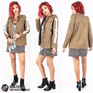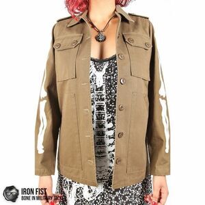 Iron Fist Bone In Military Jacket ...we gotta bone to pick with you, bb. This fab jacket is constructed from cotton duck canvas and features dope bone accents running down the long sleeves with a relaxed fit. Throw this retro military jacket on over your halloween costume during the season or wear year round if you’re proud of your gorgeous bones.
