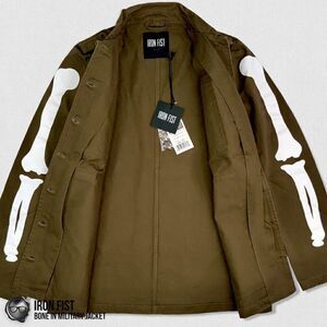 Dolls Kill Iron Fist Bone In Military Jacket in Olive Green Skeleton Bones Halloween Chore Jacket XS