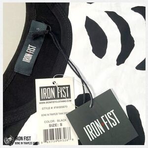 Italian designed Iron Fist Bone In Trapeze Dress from Dolls Kill. Monochromatic, solid black with white skeleton torso from sternum to rib cage. Imagine all the ways to style this cool A-line swing dress! Not only is it great for Gothic, Punk, Grunge and Dark Academia looks, this sleek suit will serve the edge on any style. Not just for Halloween, Goyls!