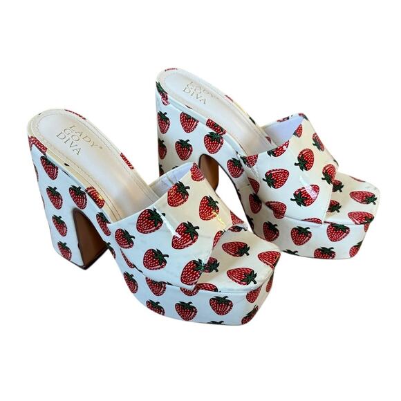 DOLLS KILL Lady Go Diva Strawberry Chunky Platform High Heels Slides Size 5.5