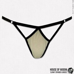 Dolls Kill x Widow Slinky Spandex Strappy Panty In Off White Champagne Size Medium