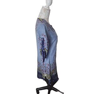DOLMA ANTHROPOLOGIE Modal dress Blue Floral 3/4 Rolled Tab BOHO hippy Small
