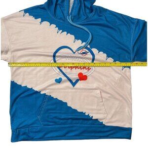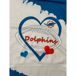 UNBRANDED ~ Dolphins graphic hoodie. Women's bust size 45"-46". Cobalt blue and white with red accents. Banded hem and cuffs.