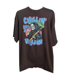 DOM Chillin Like A Villain Graphic Black T-Shirt Men’s Size 2XL Grim Reaper