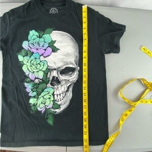 DOM skull & roses short sleeve Y2K goth halloween tee, S