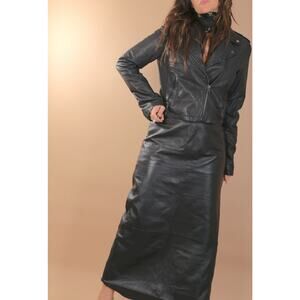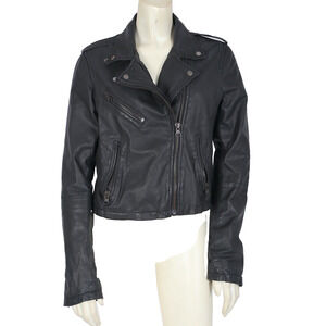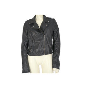 DOMA Black Leather Moto Motorcycle Short Jacket