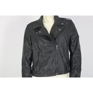 DOMA Black Leather Moto Motorcycle Short Jacket Size 10