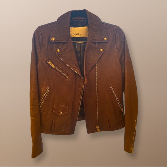 Doma Leather Jacket in Chocolate Brown with Silver Hardware, size small, in great condition (looks brand new!)