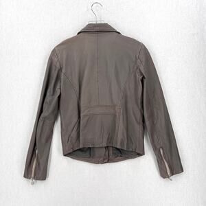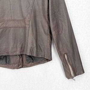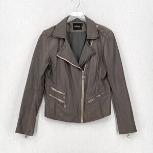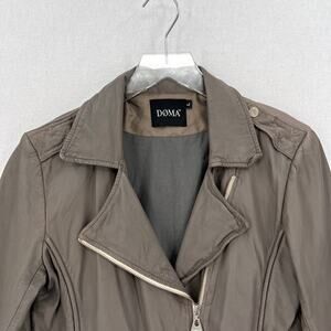 DOMA Leather Moto Jacket Womens Large Gray Taupe Zipper Detail Biker