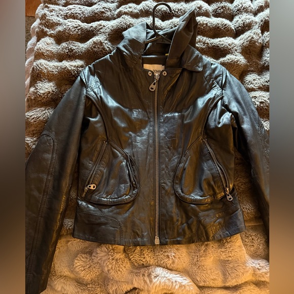 DOMA women’s leather jacket with hood. Only worn a few times. Excellent condition. Please see photos for reference.