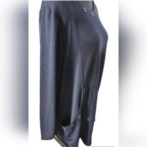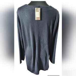 DOMANI Cotton Blend Round Neck Long Sleeve Blue Tunic Top Size Large NWT