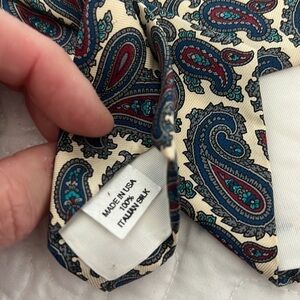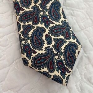 Beautiful 100% Italian silk paisley tie. There are no stains or tears. Cream, maroon, turquoise, navy, and gray paisley make this tie very versatile.