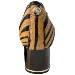 Unleash your wild side with these fierce DONALD PLINER Aston heels! Crafted from genuine calf hair, these pumps are the ultimate statement shoe for the bold and stylish. Get ready to turn heads and strut with confidence in these luxurious, head-turning pumps.