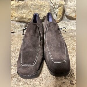 DONALD J PLINER Audra Brown Suede White Stitching Side Zip Loafers Women’s 8