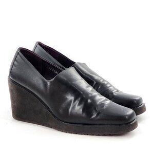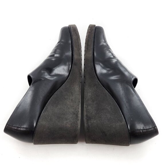 DONALD J. PLINER Black Napa Leather Square Toe Wedge Pumps Booties