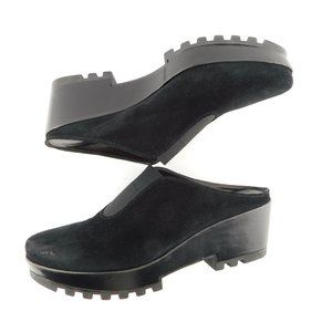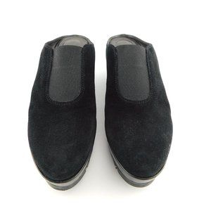 DONALD J PLINER Black Suede Leather Platform Wedge Slide Mules 7.5
