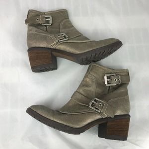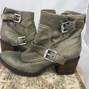 DONALD J PLINER Delta Moto Gold sparkle Distressed Ankle Boots