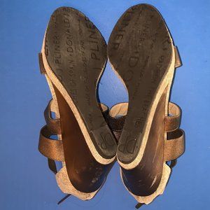 DONALD J PLINER Gold Leather Zip-Up Wedge Shoes 6M