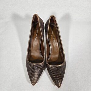 DONALD J PLINER Mobwife Sirencore OldMoney Elevated Basic Executive Girl Officecore Gold Metallic Brush Off Leather Torin Pointed Toe High Heels Pumps Shoes Women's Size 8.5 M. Made in Spain!