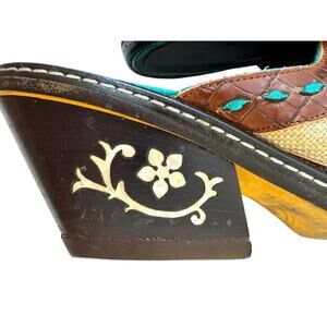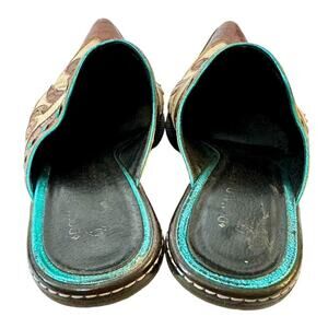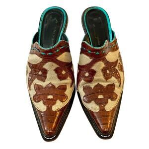DONALD J. PLINER Juno Leather Brown Turquoise Western Couture Italian Mules Size 7M