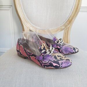 DONALD J PLINER Nolin Lavender Viper Python Leather Chain Loafer Flats Sz 7