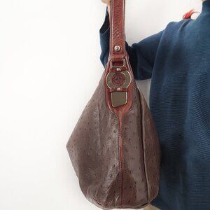 DONALD J PLINER Ostrich Embossed Leather Handbag Shoulder Bag Brown