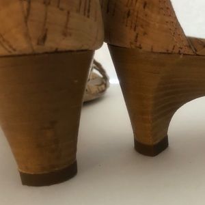 Sexy meets comfort. Cork sole, elastic straps, Pliner comfort. Neutral beige that goes with most. 7.5N.
