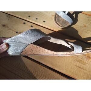 DONALD J PLINER Silver Metallic Cork Wedge Sandals Strappy Adjustable 8M