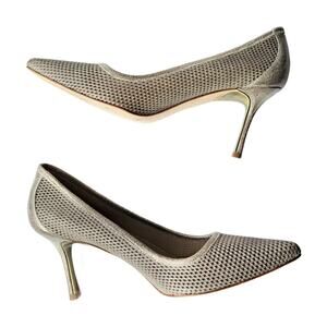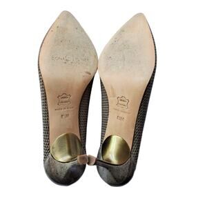 DONALD J PLINER Torin Platino Metallic Brush Off Leather Heels Women’s 8.5 Gold