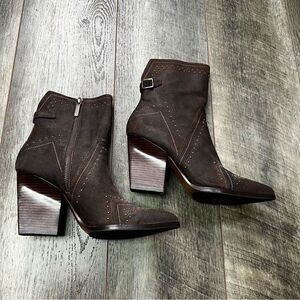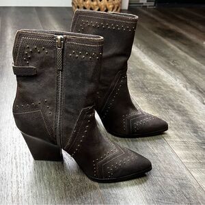 DONALD J. PLINER Vegas Brown Leather Studded Heeled Boots Size 7
