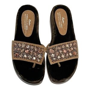 DONALD J Pliner Fifi Brown Velvet Bedazzled Platform Slide Women’s Size 9.5