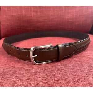 DONALD J TRUMP SIGNATURE COLLECTION BROWN BRAIDED SILVER BUCKLE LEATHER BELT 38