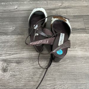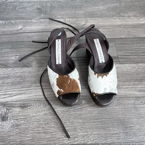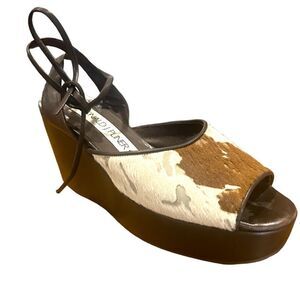 DONALD J. PLINER COWHIDE LEATHER LACE UP COW PRINT CHUNKY HEEL WEDGES