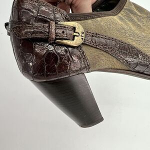 DONALD J PLINER Couture Tabia Brown Suede Croc Ankle Booties 7.5M Italy