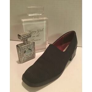 Square toed— stretchy mesh black slip on —approx. 6” vamp - entire shoe is mesh w/ leather around back side and heel side— 1 3/4” solid block black heel. Shoes can go from casual to dressy. 11M EUC