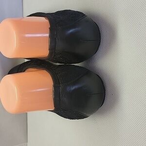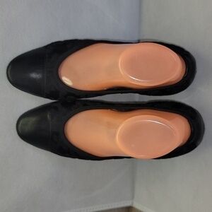 Donald Pliner Couture black (body) fabric & leather (toes & heels) slip on flats. The shoes are in great condition. Please see all pictures.