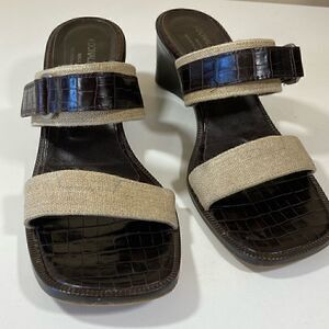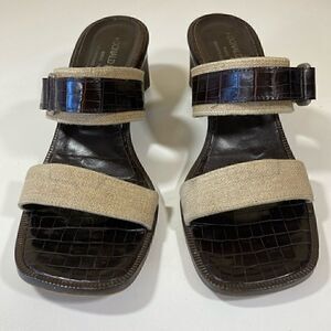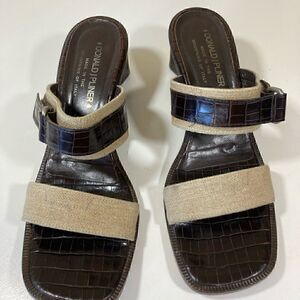 DONALD PLINER CROC EMBOSSED LEATHER & Canvas Women’s open toe sandals size 9 GUC