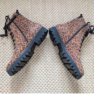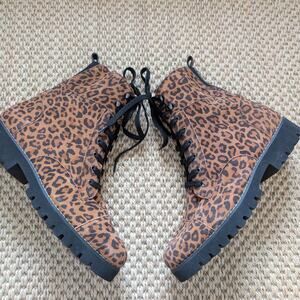 DONALD PLINER Ease Leopard Print Suede Lace Up High Top Combat Boots, 9.5 NWOB