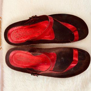DONALD PLINER RED METALLIC TOE STRAP SANDAL SZ 8M