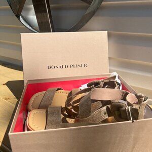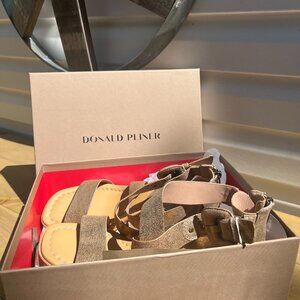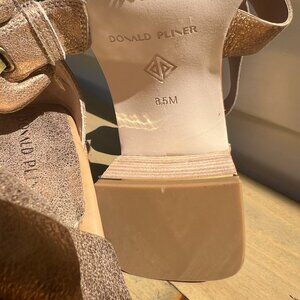 NEW! NEVER WORN! WITH BOX! Donald Pliner Women HELEN Light Bronze Casual, Dress, Heel, Sandal, Stretch, Size: 8.5 <span style="color: rgb(0, 0, 0);">Bold and powerful, the HELEN sandal wraps your foot securely in a criss-cross crinkle metallic leather upper with an adjustable buckled ankle strap. A stacked block heel accented by a metal rand adds chunky style and stability, while memory foam insole padding keeps you comfortable on your feet all day. This strappy sandal is finished with a non-slip rubber outsole forepart.