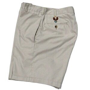 DONALD ROSS Men's Performance Shorts Tan Checked Deep Front Pockets Size 33