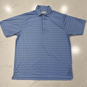 DONALD ROSS Mens Sz L Blue White Plaid Short Sleeve Golf Polo Shirt Nemacolin CC