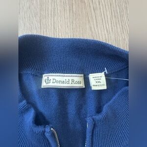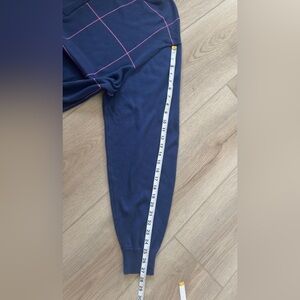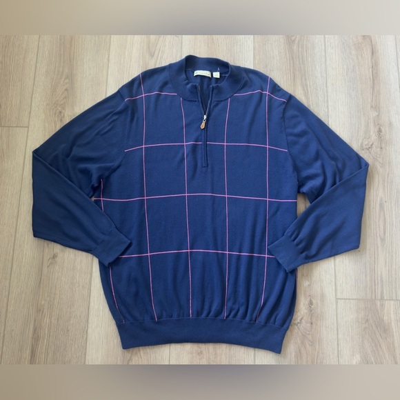 DONALD ROSS Navy Blue Sweater with Pink Grid Pattern. 80% COTTON 20% WOOL ✅