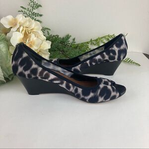 Donald Pliner Molly - L545 White Black Leopard MESH Size 7.5 wedge heel