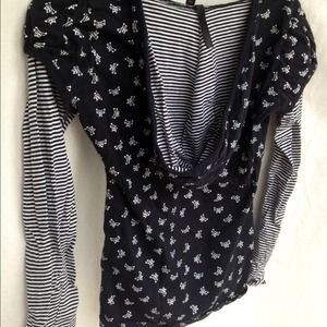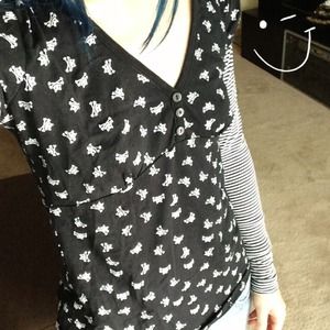 Adorable long sleeve, very soft black and white kitty skull and cross bone hooded shirt with stripped sleeves. I have two, one for sale has never been worn! ❁